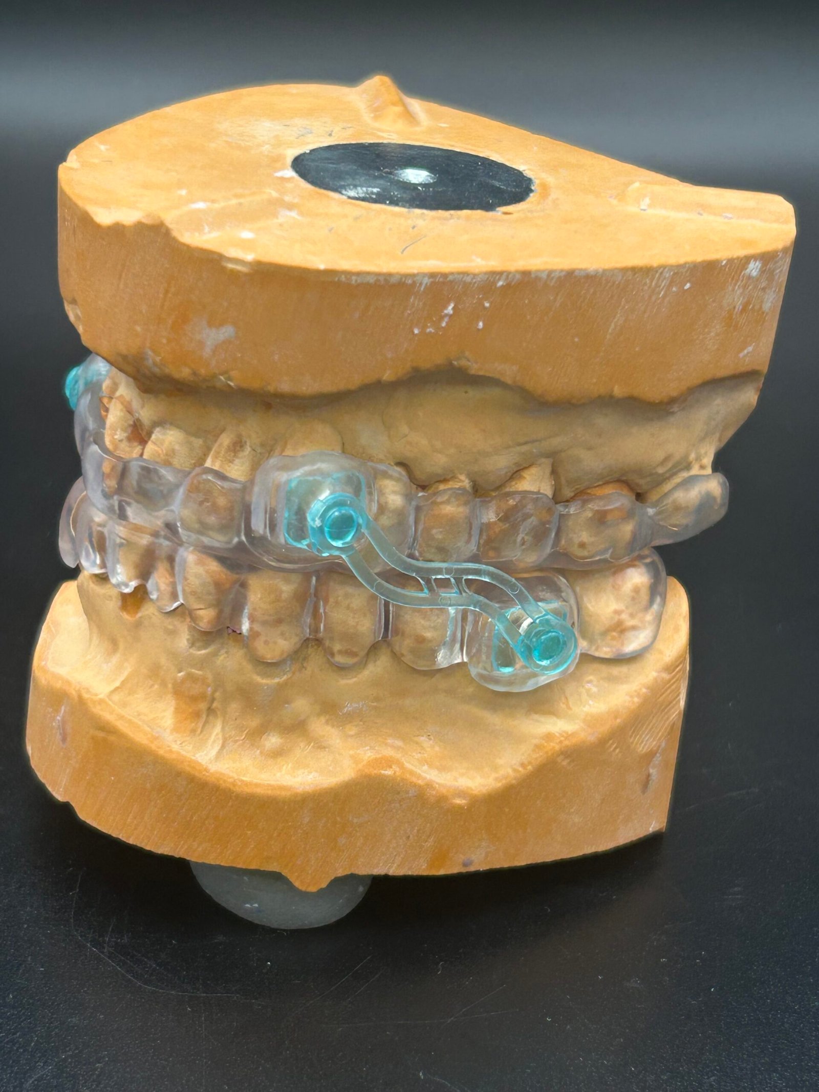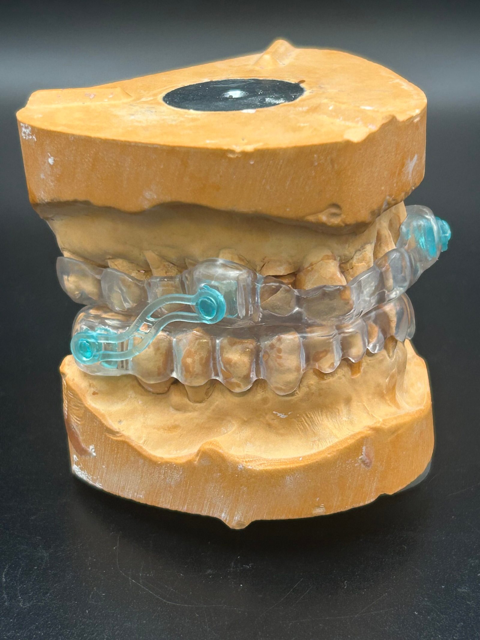 Durch die Kombination aus präziser Fertigung, biomechanischer Funktion und individuell anpassbarer Konstruktion stellt diese Protrusionsschiene eine technisch ausgereifte, komfortable und effektive Lösung zur Behandlung schlafbezogener Atemstörungen dar.
